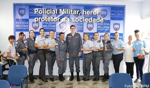 Em comemoração ao Dia Internacional da Mulher, na tarde desta segunda-feira (09), o efetivo feminino do 10º batalhão foi homenageado pelo comando da unidade. A comemoração reuniu as policiais no auditório da sede, e contou com um café da tarde além de palavras de valorização da classe, expressadas pelo Ten Cel Cleverson Mancini Lyra, comandante do batalhão e pelo Major Alexandre Siqueira Miranda, subcomandante da unidade.