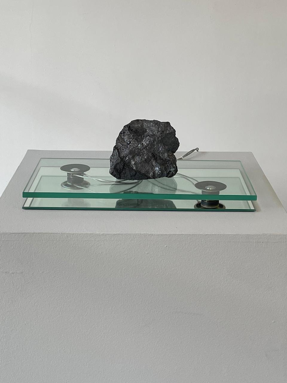 Na exposição, é apresentada uma “geologia como linguagem”, com obras que investigam as relações entre matéria, tempo e transformação. Argila, pedra, aço, cobre e plástico reciclado aparecem como elementos centrais nas pesquisas dos artistas, revelando processos de sedimentação, fricção e deslocamento que atravessam tanto a natureza quanto a experiência humana.