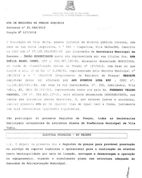 Nossa equipe verificou junto à prefeitura de Vila Velha e constatou que ATA escolhida pela prefeitura de Guarapari tinha como empresa licitada a AFR Eventos, a mesma empresa que organizou o carnaval em Guarapari e que não repassou o valor integral referente aos cachês das escolas de samba e blocos.