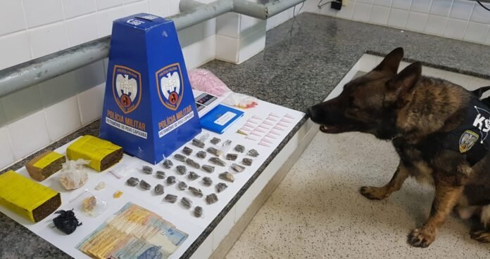 Durante a noite de ontem, policiais militares receberam a informação de que um indivíduo estaria armazenando e vendendo entorpecentes no Bairro Kubitschek. De imediato prosseguiram ao local e de posse com o indivíduo foram localizados 35 buchas e 02 metades de tablete de maconha, 03 pedras de crack, 01 papelote e 20 pinos de cocaína. Em seguida, com o apoio do cão policial (K9) foi possível localizar na parte externa da residência mais uma 01 porção média de crack. Diante dos fatos, o indivíduo e o material apreendidos foram encaminhados a 5ª Delegacia Regional de Guarapari.