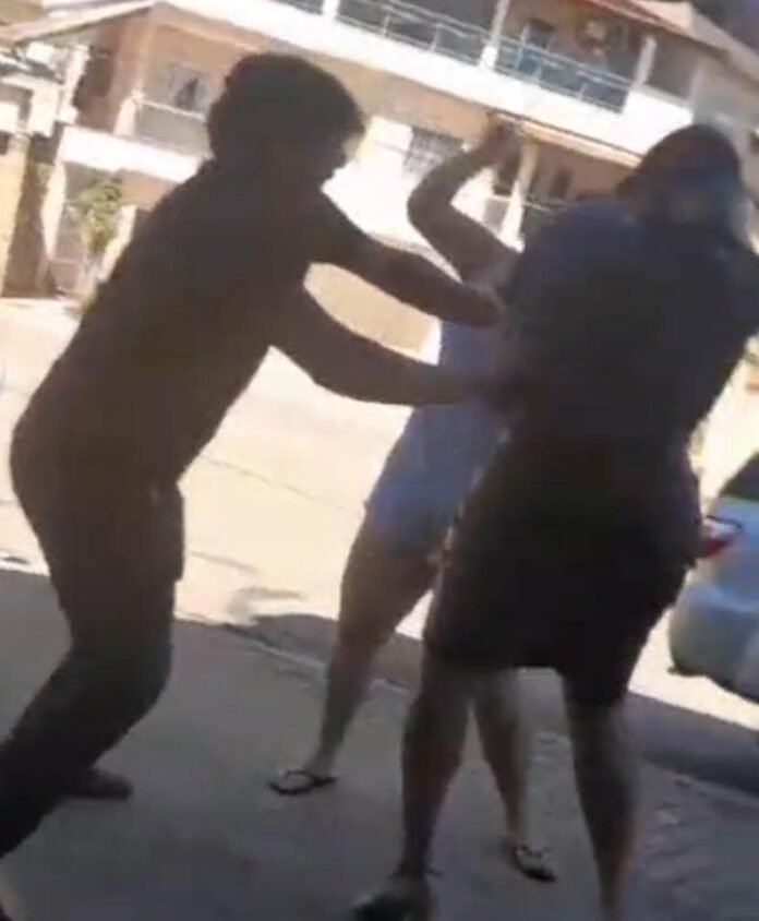 No vídeo, é possível ver o início da agressão e ouvir gritos que apoiam a violência.